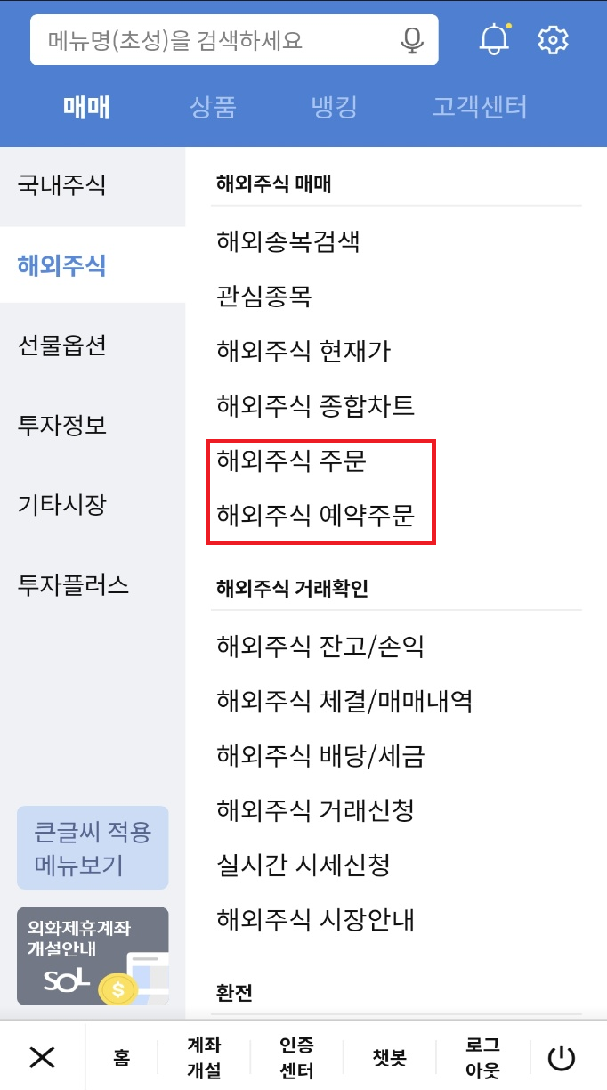 '해외주식 예약주문'의 경우 다음과 같습니다.