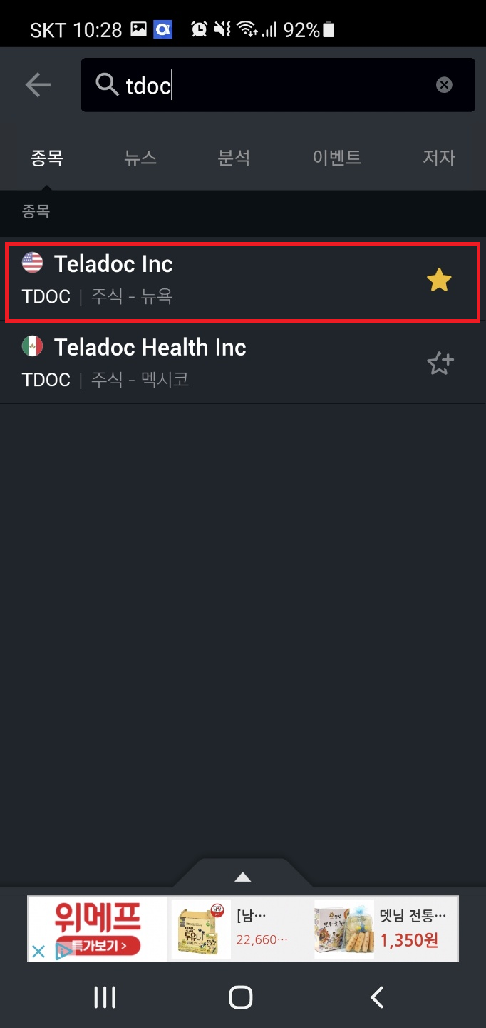 * 노란 별은 포트폴리오에 추가되어 있음을 나타내는 것으로 실시간 시세 확인에 영향을 끼치진 않습니다.